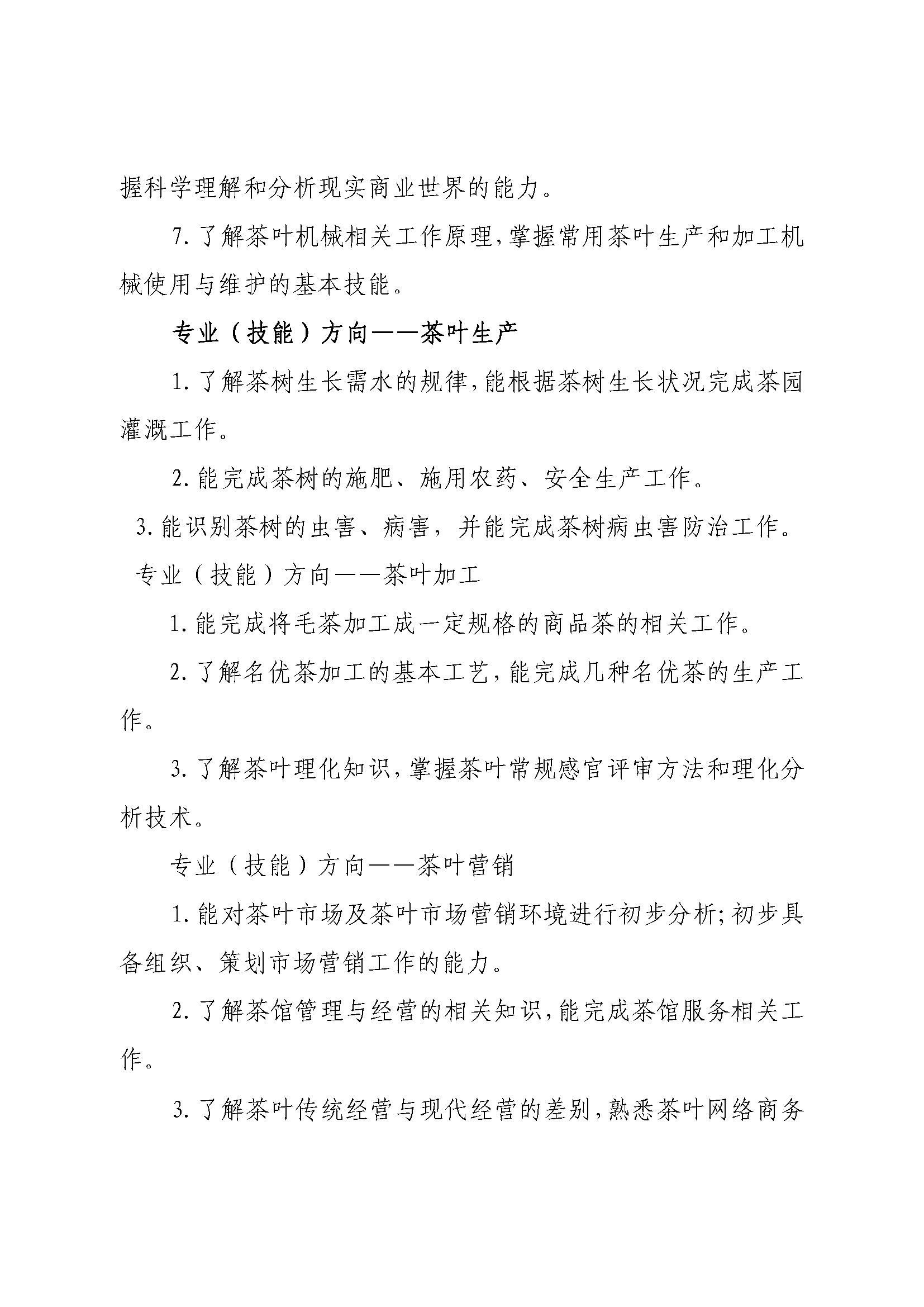 三明市农业学校茶叶生产与加工专业人才培养方案(2023)