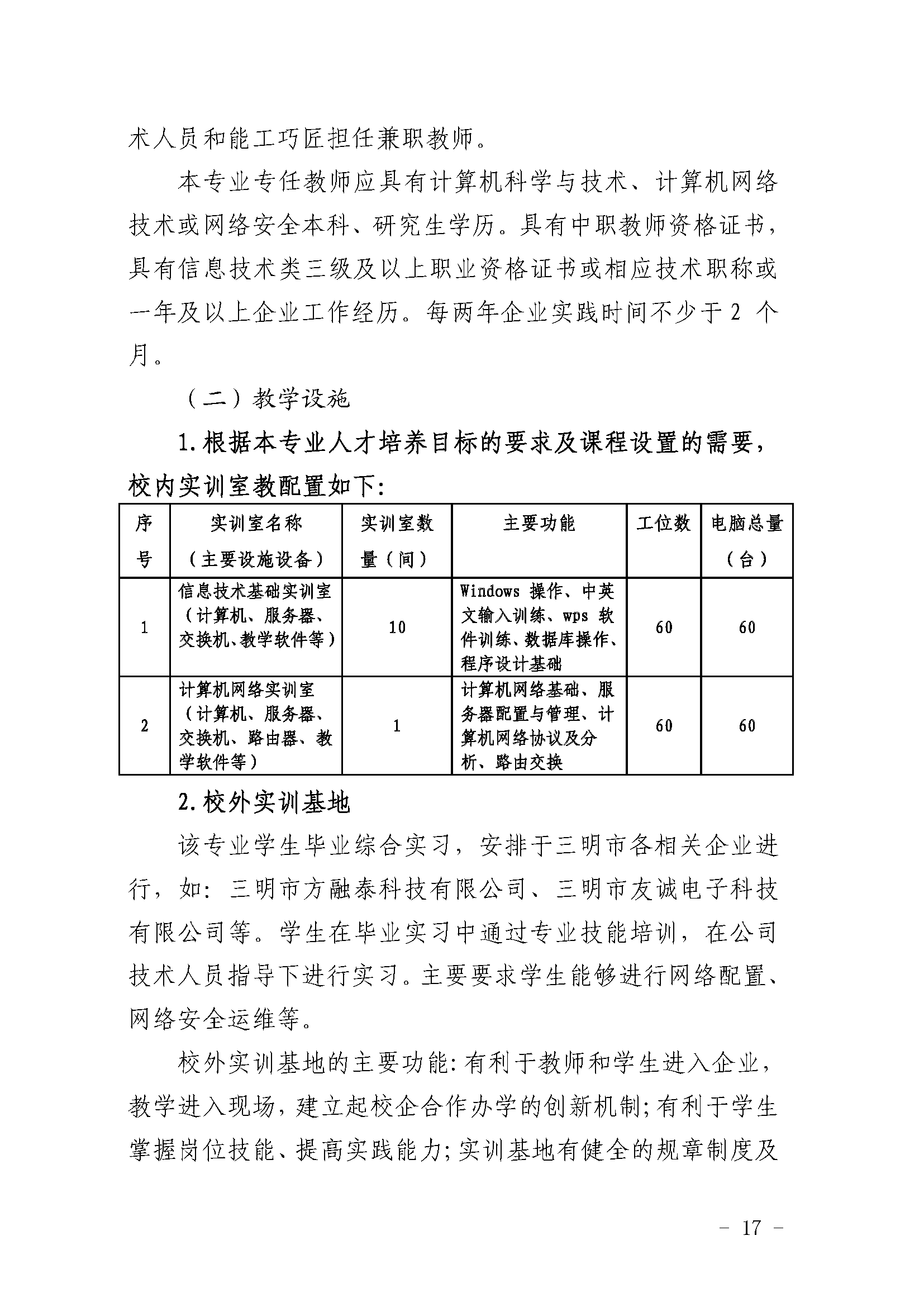 三明市农业学校计算机应用专业人才培养方案(2023)