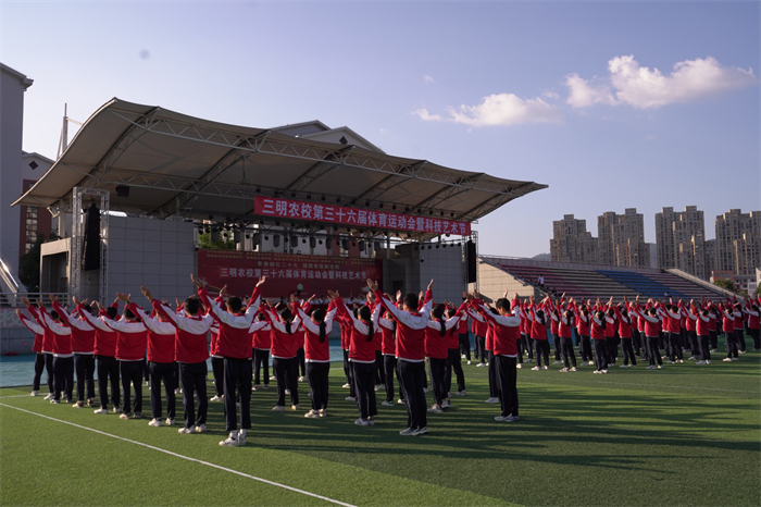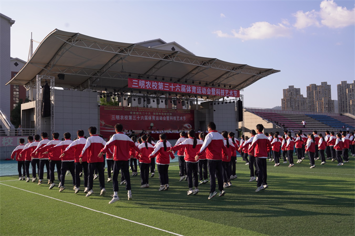 为了丰富校园文化生活,培养学生集体荣誉感和团结协作精神,2023年10月31日下午,三明市农业学校在体育运动场举行全校广播操比赛。学校第36届体育运动会暨科技艺术节组委会主任、党委书记、校长罗世钦,在家的组委会副主任、学校党委委员、副校长陈文优、胡安生及其他组委会委员等出席比赛现场。本届广播操比赛共有97个班级参加。